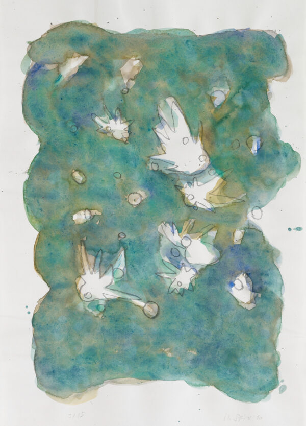 Lithografie übermalt mit Aquarell, Edition von 15, Blattgrösse 62 x 44 cm